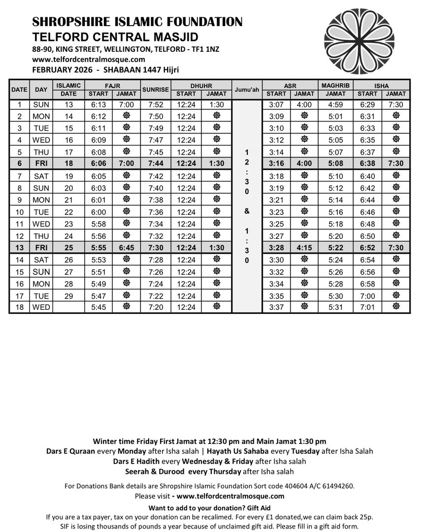 Due to current weather conditions, please take extra care with your journey to the masjid, around the masjid and the car parks.
