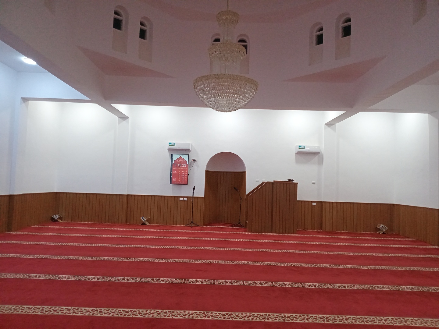 Between the athan and the iqama, and after each prayer, reminders and invocations are displayed. A Prophet's Hadith "May Allah's Prayer and Salvation Be to Him" is also displayed every 5 min