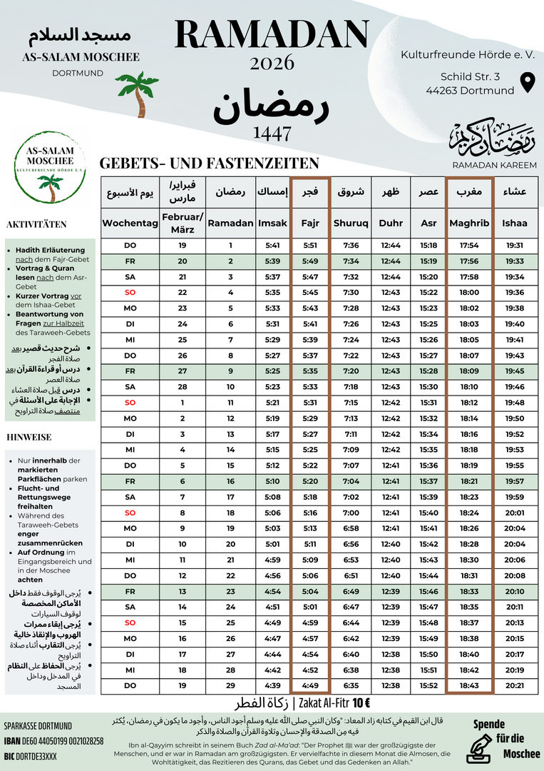 Ramadan Kalender 2026 /1447امساكية رمضان