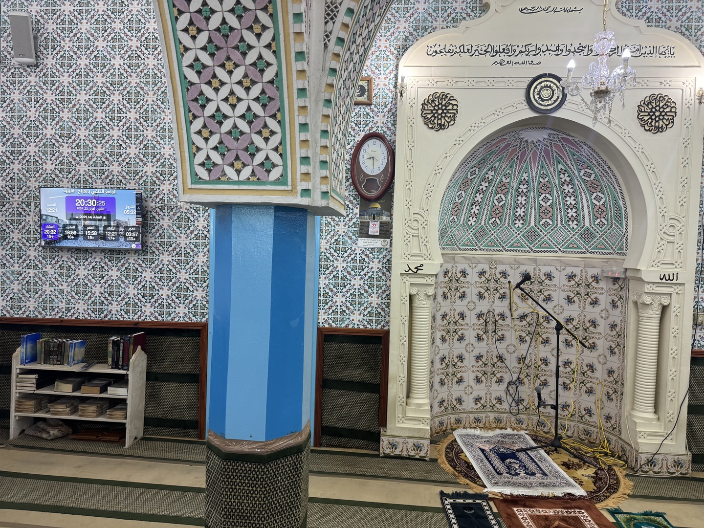 Between the athan and the iqama, and after each prayer, reminders and invocations are displayed. A Prophet's Hadith "May Allah's Prayer and Salvation Be to Him" is also displayed every 5 min