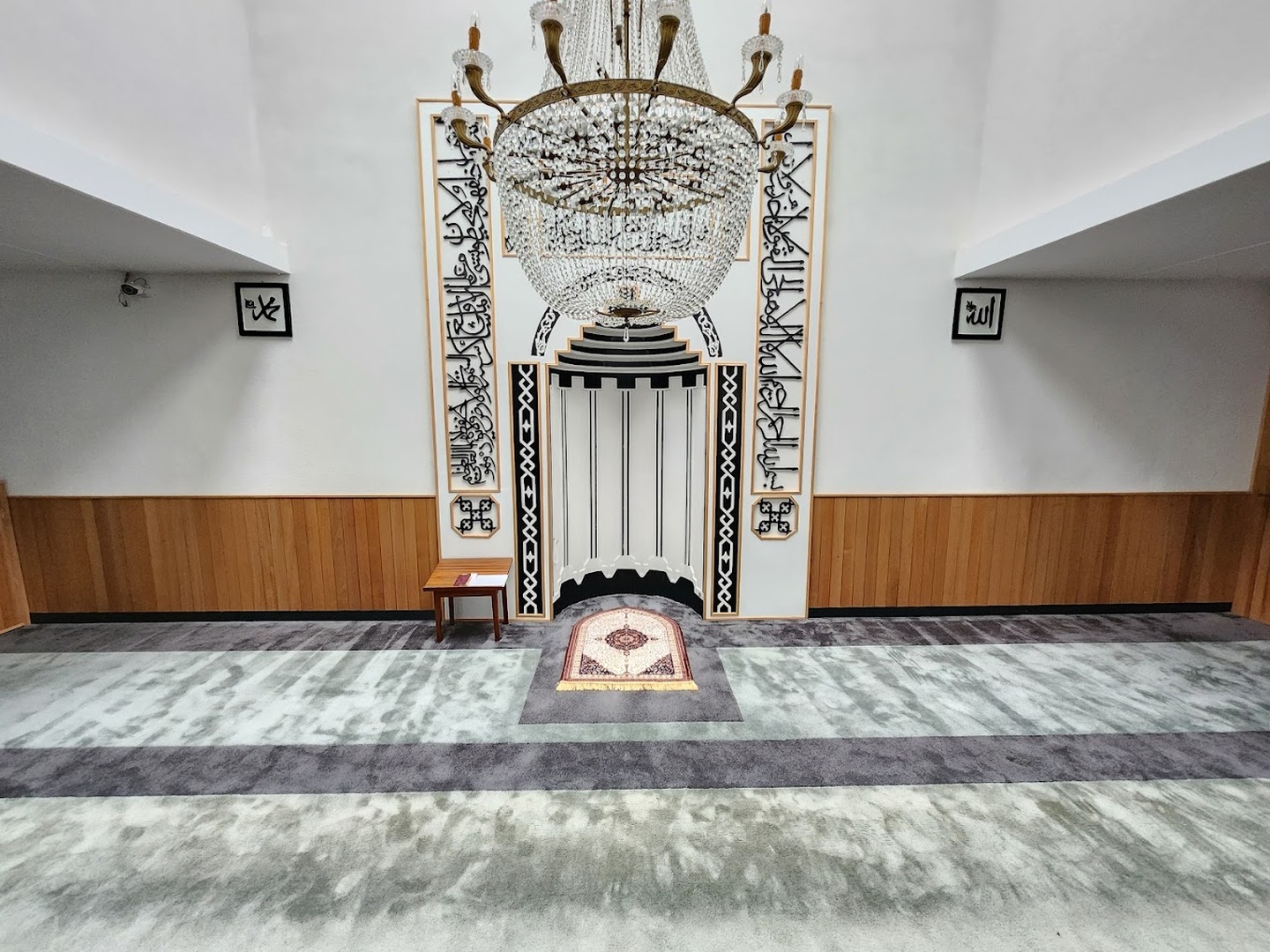 Between the athan and the iqama, and after each prayer, reminders and invocations are displayed. A Prophet's Hadith "May Allah's Prayer and Salvation Be to Him" is also displayed every 5 min