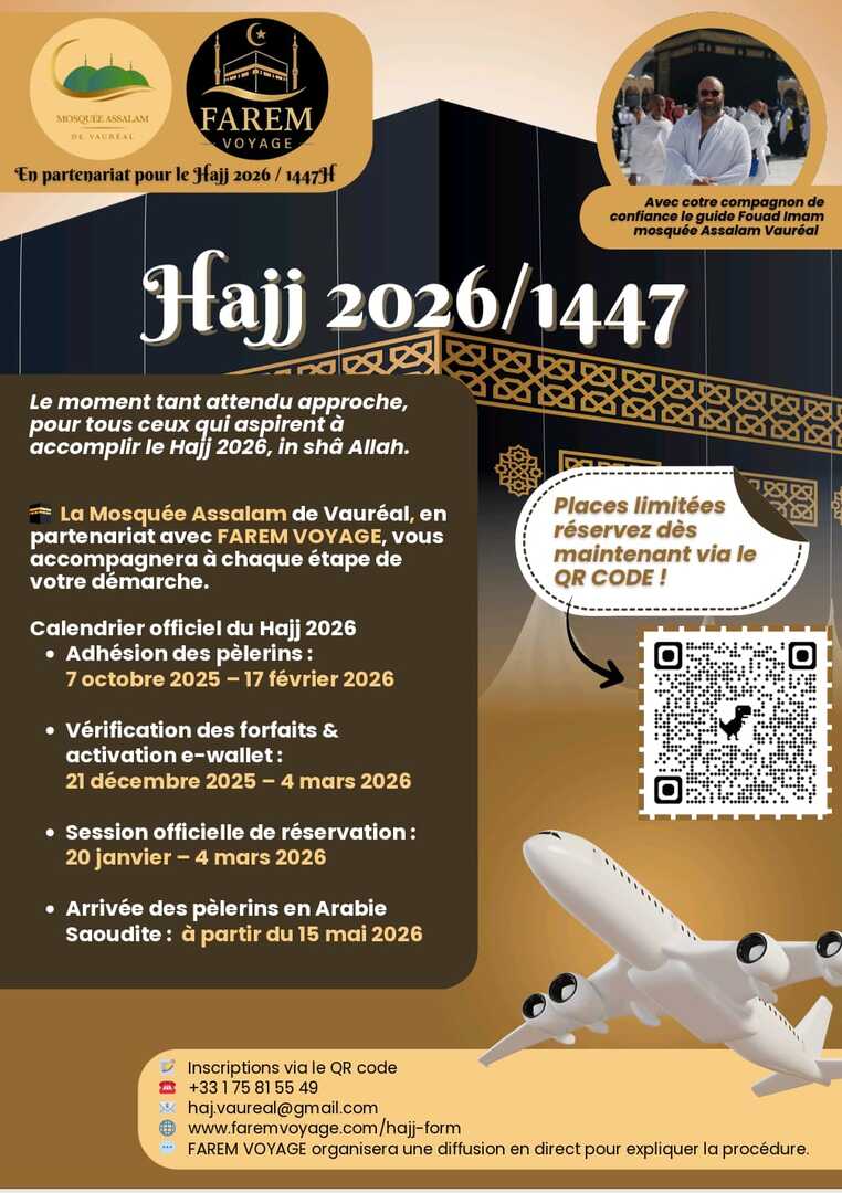 La mosquée de Vauréal vous propose deux offices du joumoua, l'un à 12h15 par l'imam Almourdi et l'autre habituel à 13H30 par l'imam Fouad.