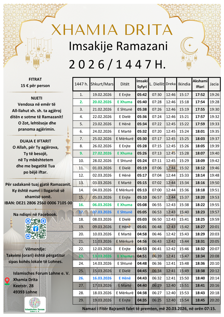 Imsakije Ramazani - Ramadan-Imsak-Zeiten