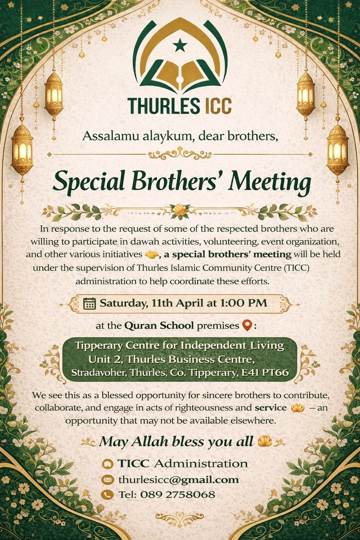 Thurles islamic community centre is a non-profit, religious community based in thurles, co. Tipperary. TICC's prayer room is located at 18 parnell st., thurles. E41 KH70