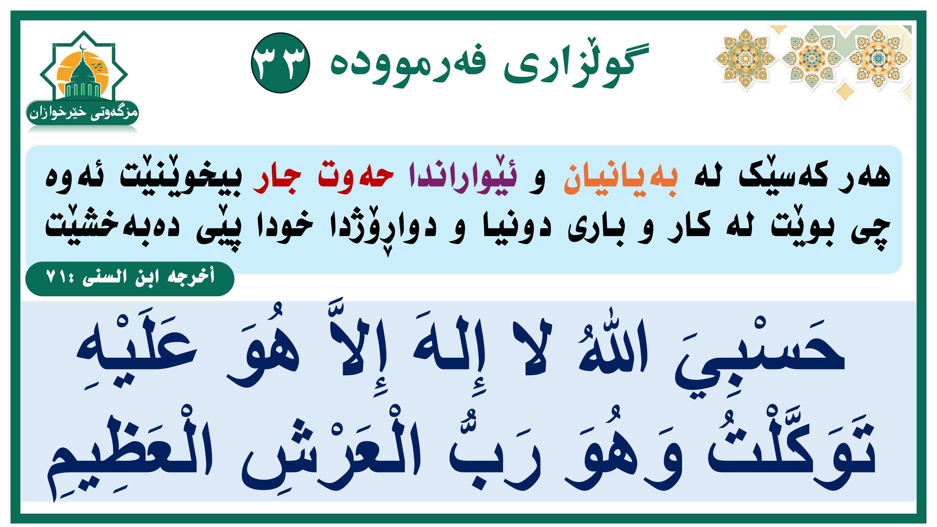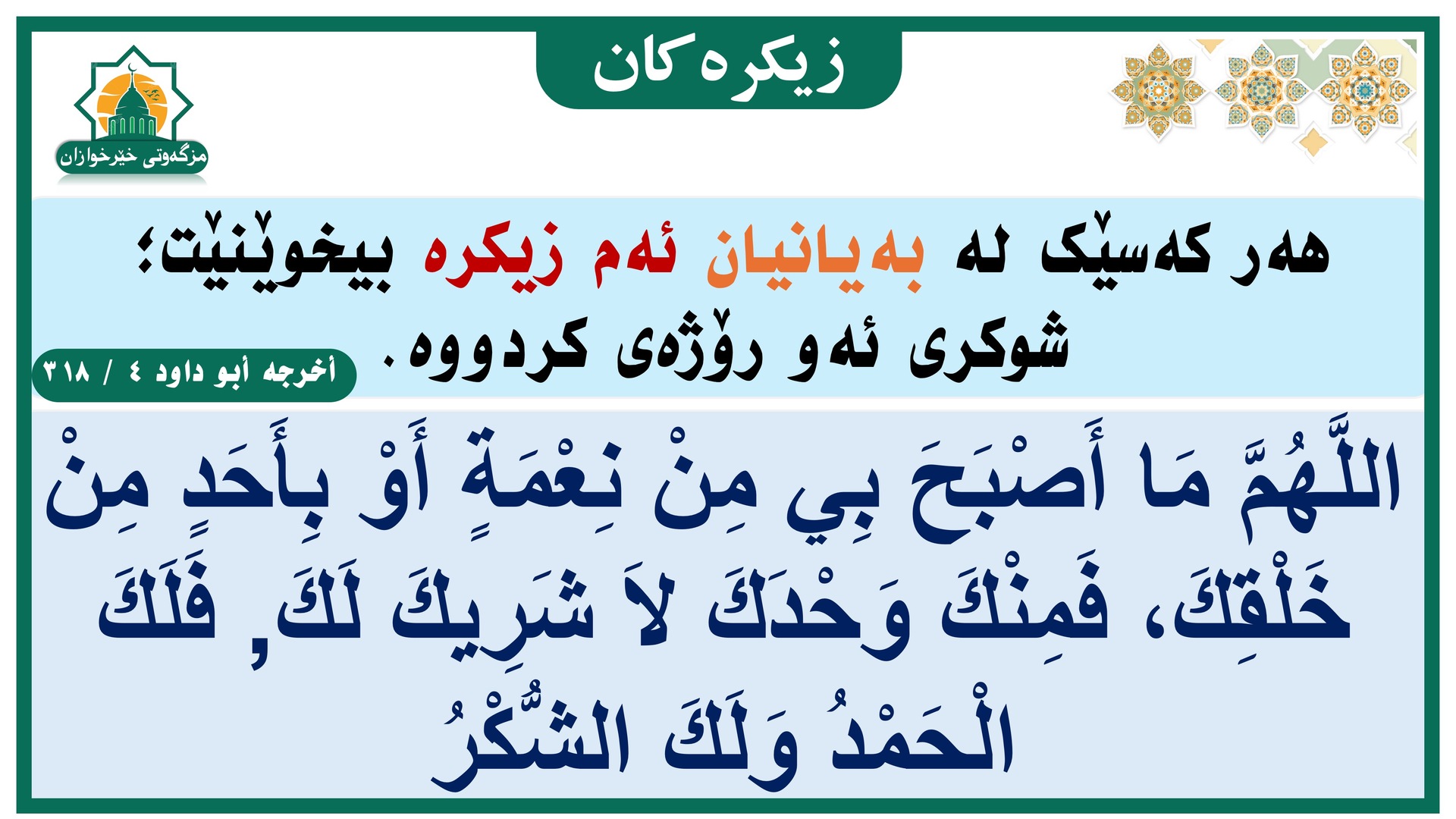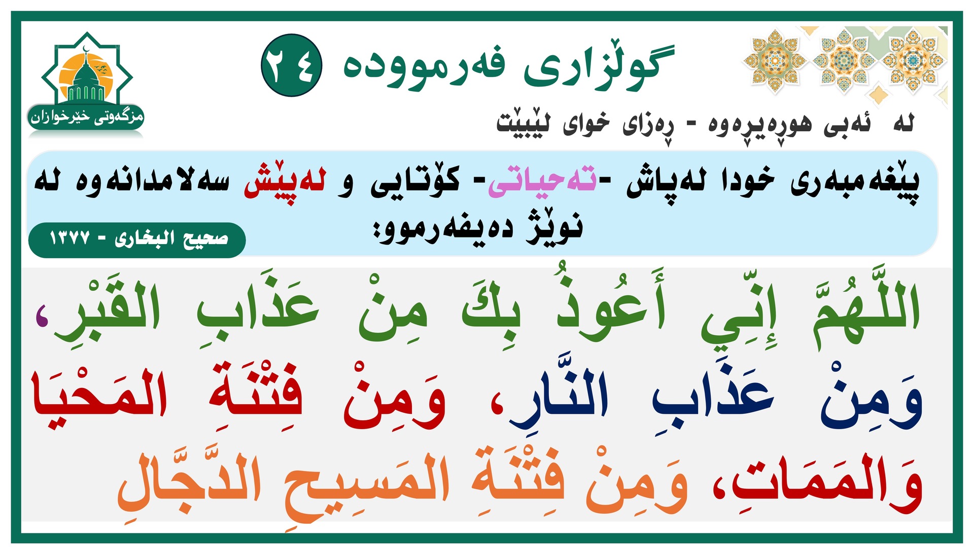O Allah, Herren av dette perfekte kallet og bønnen som vi skal utføre, gi Muhammed kraften til å gå i forbønn (dommens dag) og æresplassen [i paradiset], og gjenreis ham i den prisverdige posisjonen som du har lovet ham