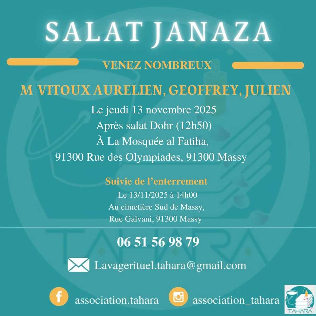 Salât Janaza Jeudi 13/11 après Dohr