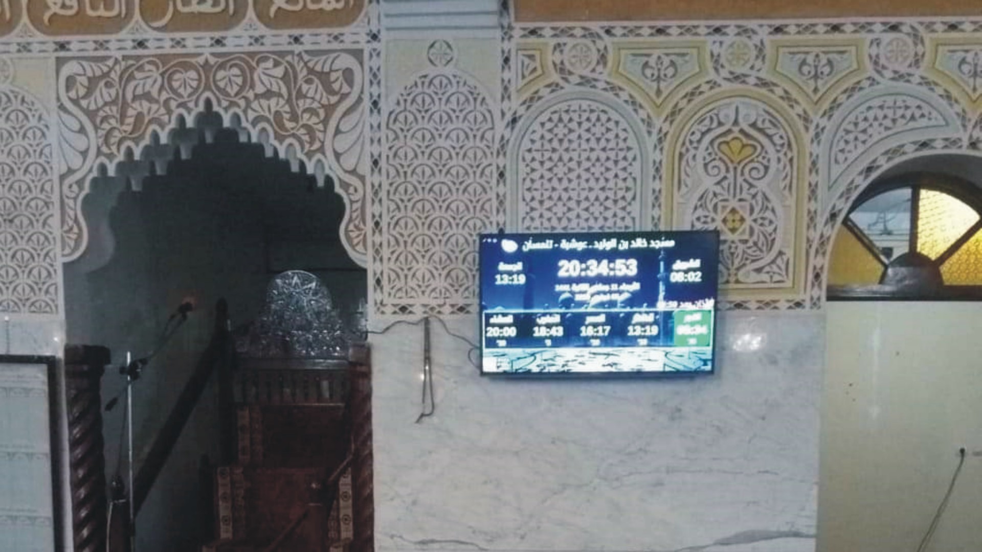 Between the athan and the iqama, and after each prayer, reminders and invocations are displayed. A Prophet's Hadith "May Allah's Prayer and Salvation Be to Him" is also displayed every 5 min