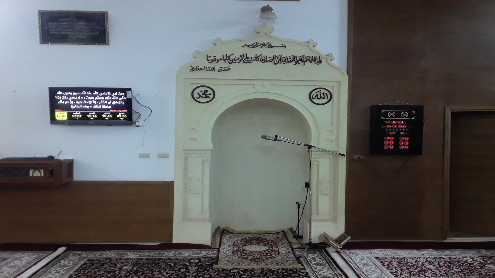 Between the athan and the iqama, and after each prayer, reminders and invocations are displayed. A Prophet's Hadith "May Allah's Prayer and Salvation Be to Him" is also displayed every 5 min