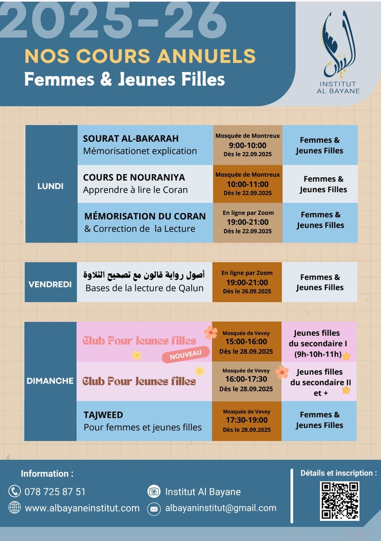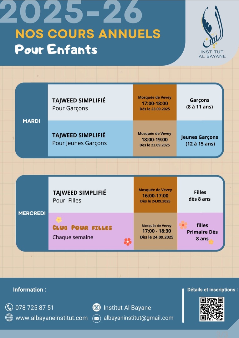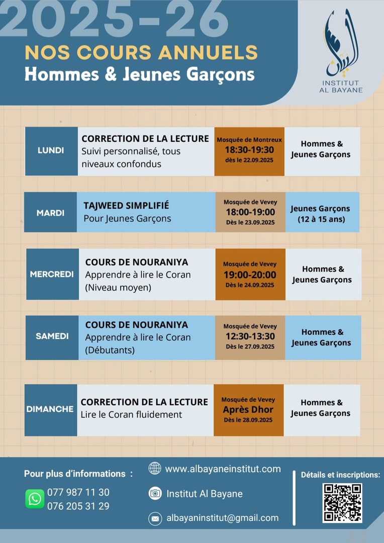 - Fajr : ouvert 15 minutes avant et 30 minutes après
