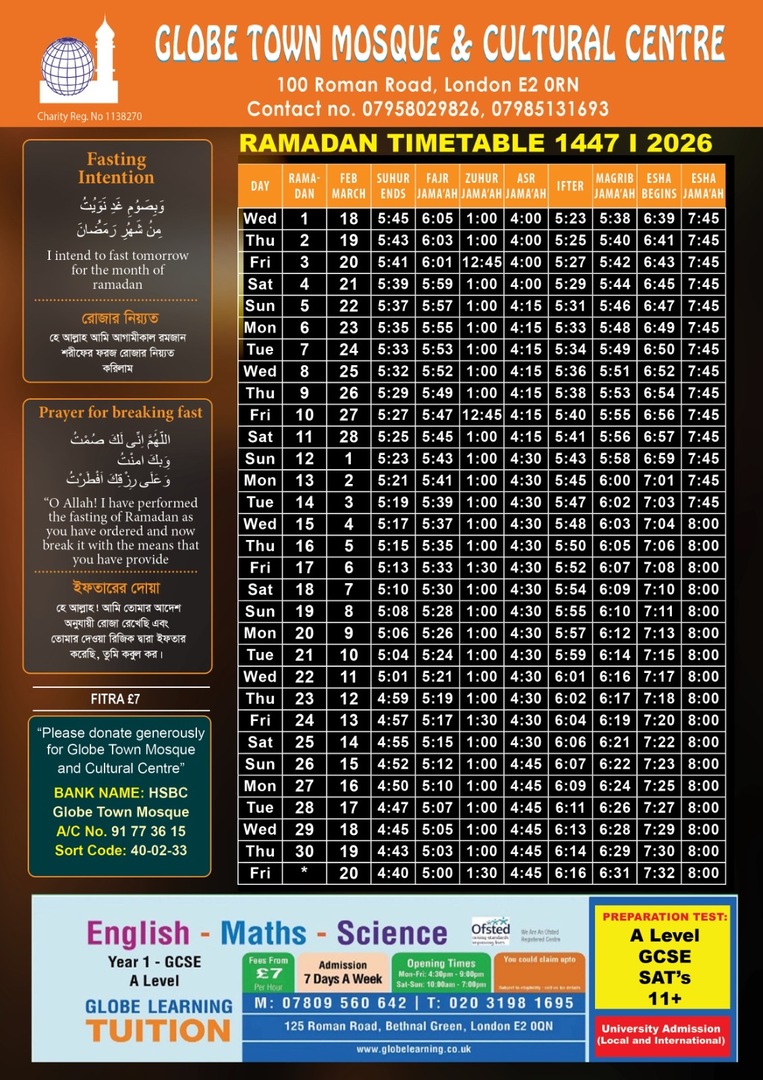 Ramadan Timetable 2026